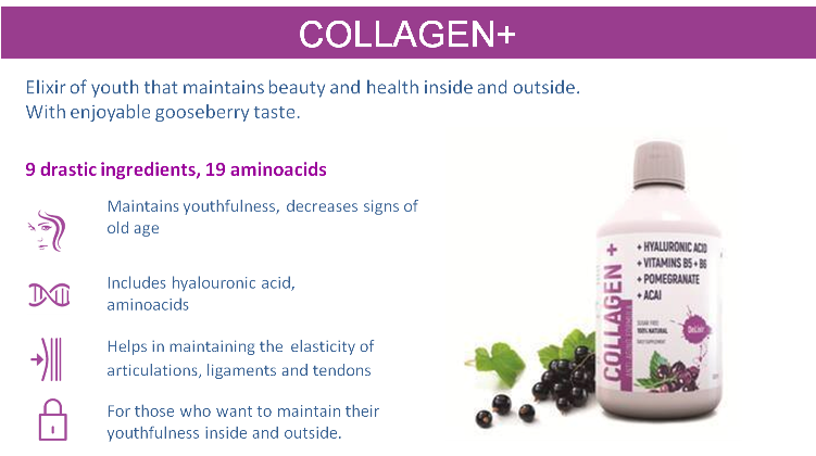 Its' use enables the stabilization of collagen losses by restoring its' youthful appearance both outside and inside the organism.